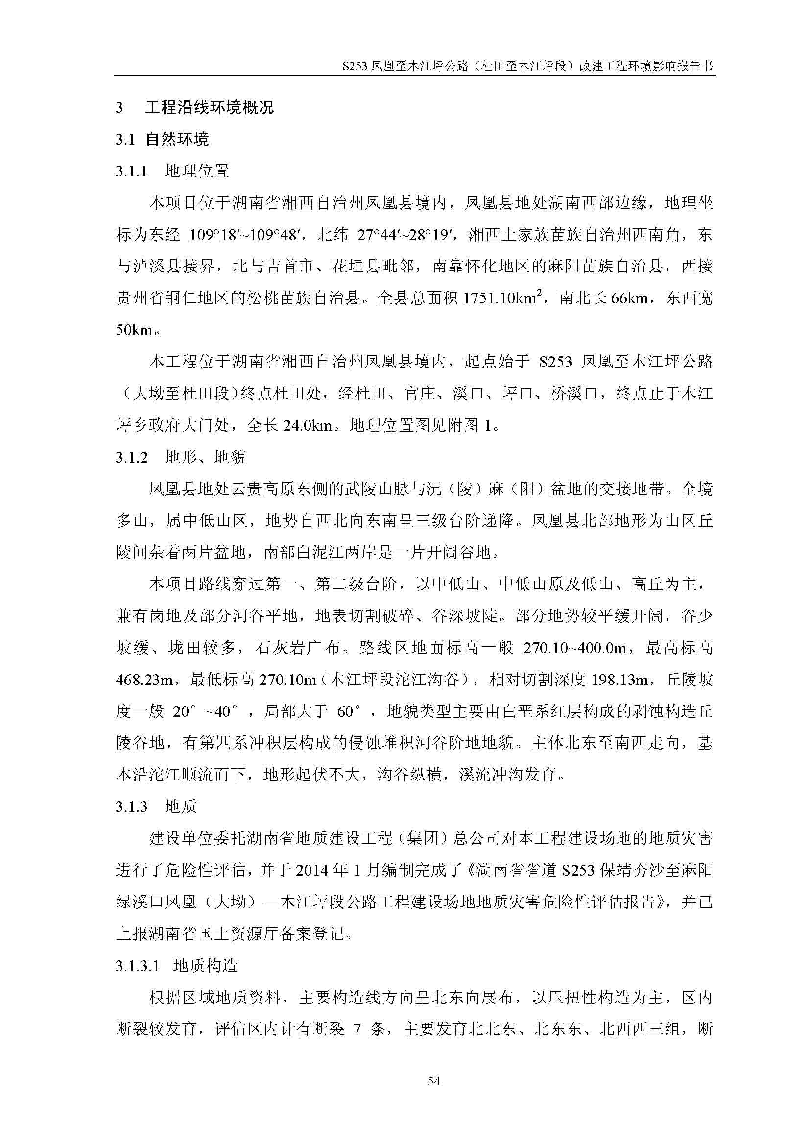 S253鳳凰至木江坪公路改建工程環(huán)境影響報告書