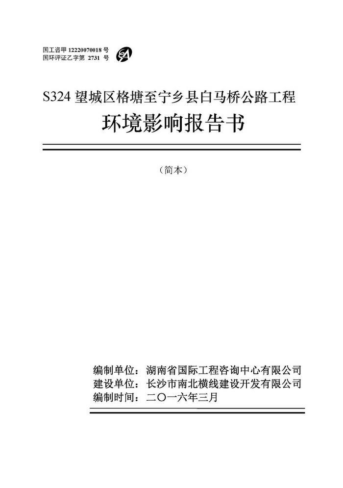 S324望城區(qū)格塘至寧鄉(xiāng)縣白馬橋公路工程環(huán)境影響報(bào)告書(shū)(簡(jiǎn)本))