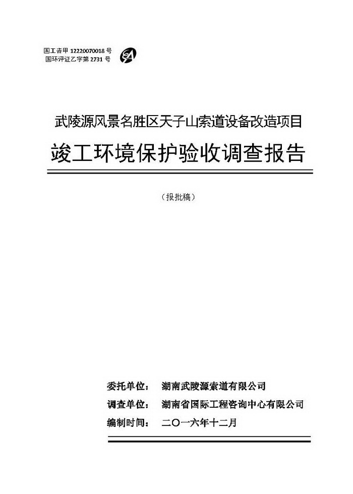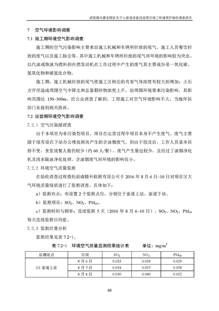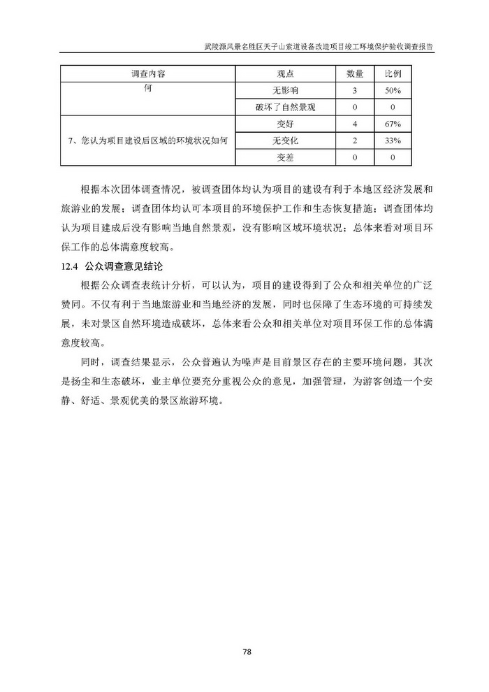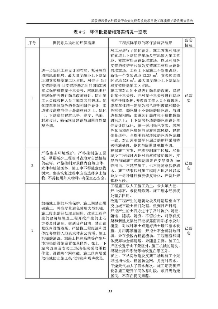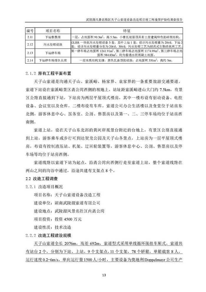 武陵源天子山索道設(shè)備改造駿工環(huán)保驗收調(diào)查報告