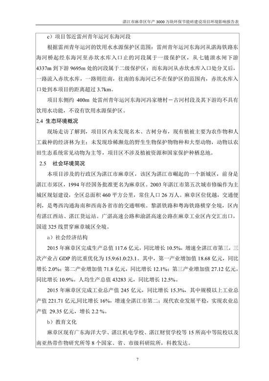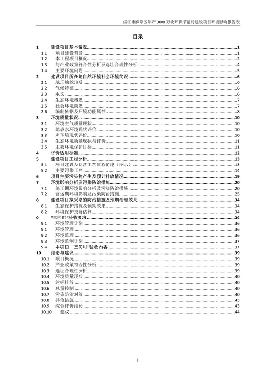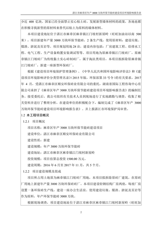 湛江市麻章區(qū)年產(chǎn)3000萬塊環(huán)保節(jié)能磚建設(shè)項目環(huán)境影響報告表公示