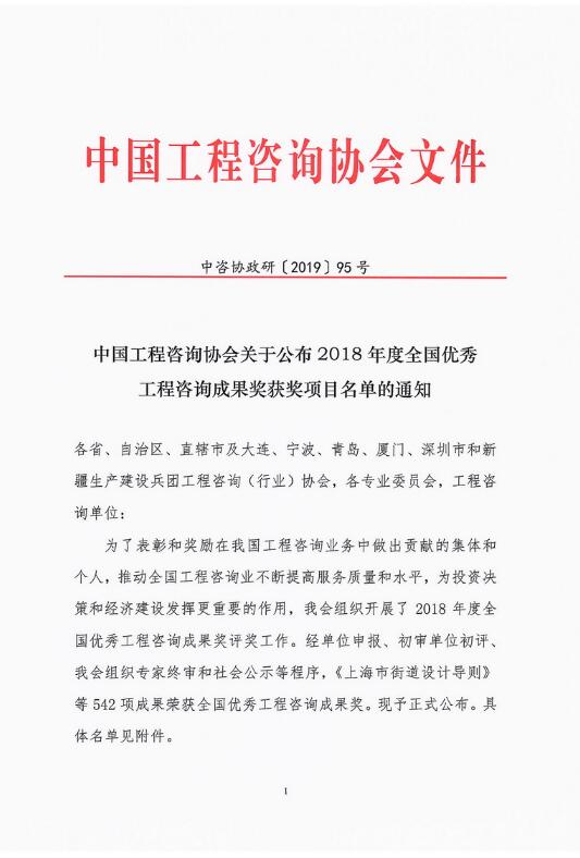 12月27日,中國工程咨詢協(xié)會官網(wǎng)公布了“2018年度全國優(yōu)秀工程咨詢成果獎獲獎項目名單”,省咨詢公司共有3項工程咨詢成果榮獲全國優(yōu)秀工程咨詢成果獎。