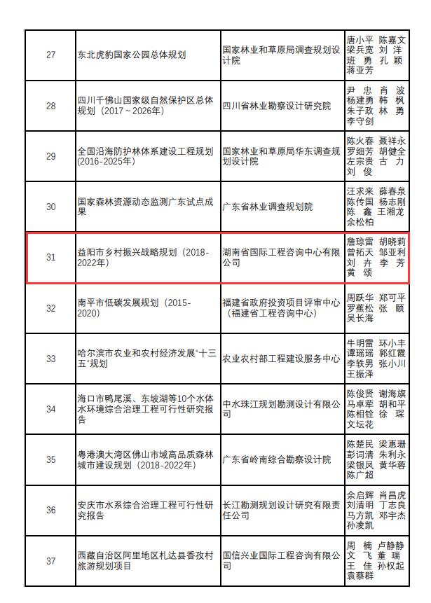 其中,農(nóng)業(yè)與湘西開發(fā)咨詢部完成的《益陽市鄉(xiāng)村振興戰(zhàn)略規(guī)劃(2018-2022年)》獲二等獎;生態(tài)規(guī)劃咨詢部完成的《湖南省大通湖流域水環(huán)境綜合治理與可持續(xù)發(fā)展專題研究報告》和《湖南省株洲市低碳城市試點(diǎn)實施方案》獲三等獎。