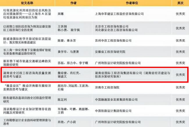 近日,《中國工程咨詢》首屆(青海杯)優(yōu)秀論文評選揭曉,湘咨集團《洞庭湖生態(tài)經(jīng)濟區(qū)綠色高質量發(fā)展路徑深析》《湖南省全過程工程咨詢高質量發(fā)展的思考與建議》2篇研究成果分別獲得三等獎和優(yōu)秀獎。