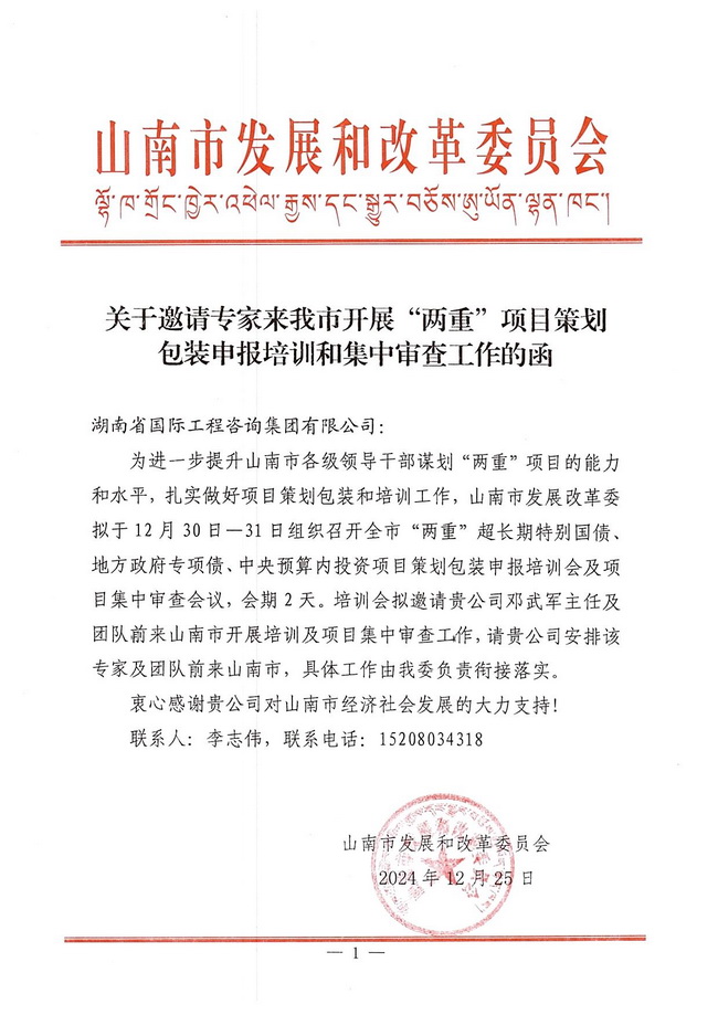 為進(jìn)一步貫徹落實(shí)黨中央和上級組織對超長期特別國債、中央預(yù)算內(nèi)資金及政府專項(xiàng)債的有關(guān)部署要求,提升山南市各縣市區(qū)項(xiàng)目建設(shè)水平,應(yīng)山南市發(fā)展和改革委邀請,湘咨集團(tuán)生······