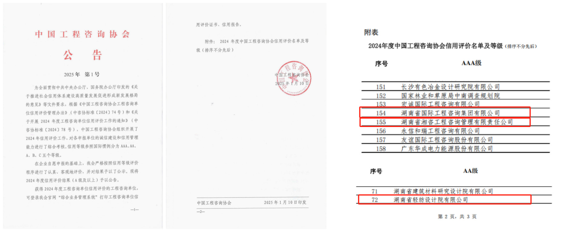 2025年1月10日,中國工程咨詢協(xié)會(下稱“中咨協(xié)”)發(fā)布2025年第1號公告,湘咨集團(tuán)成功獲評2024年工程咨詢單位信用評價等級AAA級。據(jù)省咨詢協(xié)會統(tǒng)計(jì),······